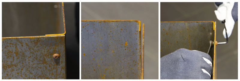 Använd handskar när du hanterar den orostade krukan. Det förhindrar fingeravtryck på materialet som kan synas när krukan senare rostar. För montering av krukan behöver du en torxnyckel nr 3 och en hylsnyckel nr 8. När du köper krukan är den orostad eller i början av sin rostning. Det tar upp till två år innan krukan är färdigrostad, beroende på väder och vind. När krukan fått sin gyllenbruna färg avstannar rostningen och krukan har ett skyddande lager som förhindrar genomrostning. Cortenstål är mycket hållbart.