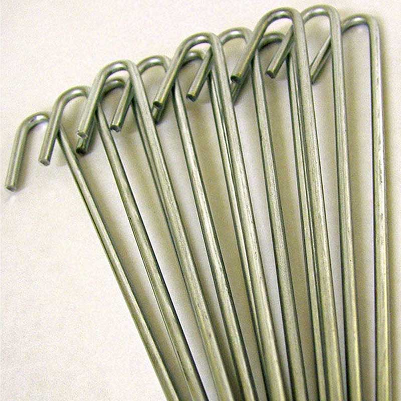 Peggar av galvaniserat stål lämpliga för att förankra odlingsklockor mm. i marken.