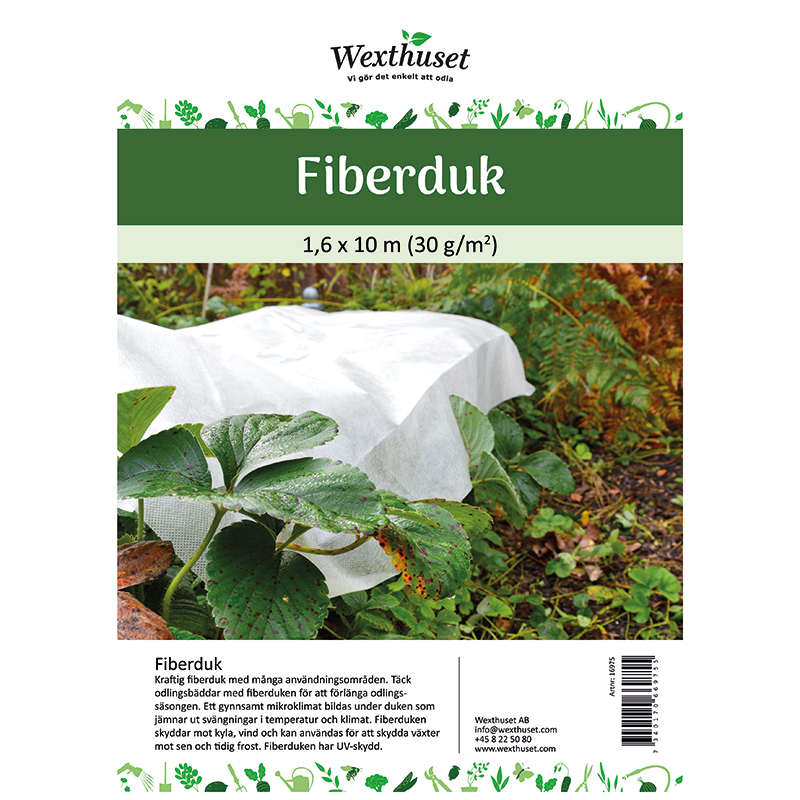 Fiberduken är UV-stabiliserad för längre hållbarhet, vilket gör den tålig även vid längre användning utomhus. Observera att duken inte blockerar UV-ljus för växterna, utan skyddar främst mot yttre klimatfaktorer.