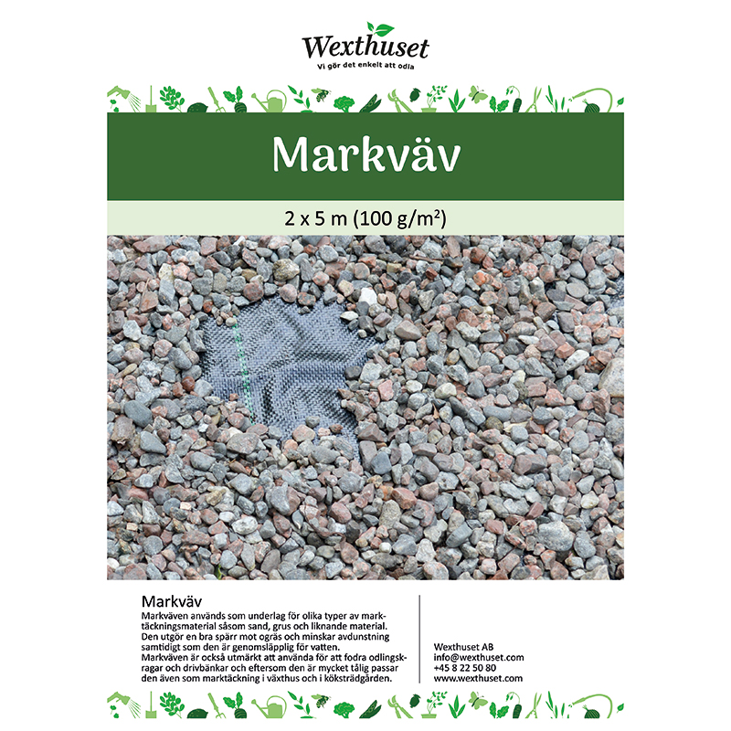 Markväven används som underlag för olika typer av marktäckningsmaterial såsom sand, grus och liknande material.