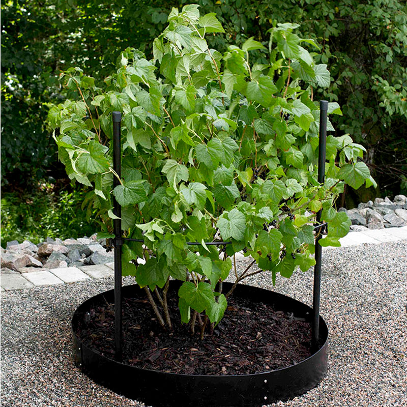 Ett flexibelt buskstöd som effektivt håller grenarna från marken. Underlättar vid gräsklippning, ogräsrensning och hindrar bär från att bli förstörda på marken. Lämplig för buskar med brett/yvigt växtsätt, som t.ex. vinbärsbuskar. Enkel steglös justering i höjdled.