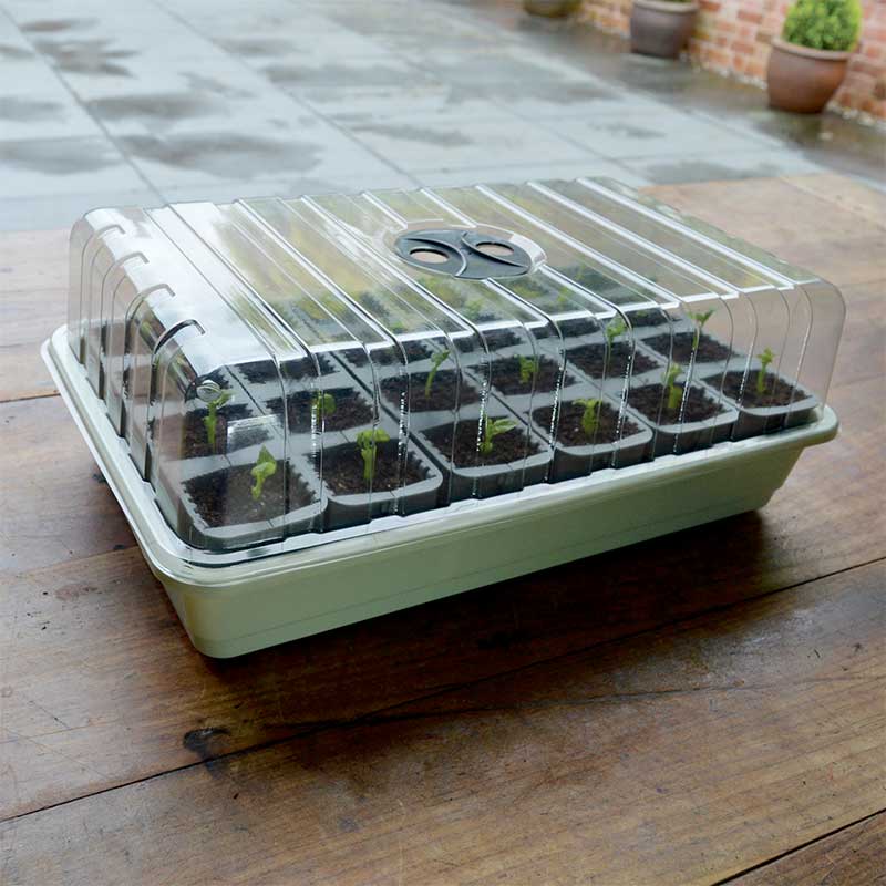 Odlingskit med bottentråg, lock, 24 stycken pluggceller, underbevattningsmatta och distans.