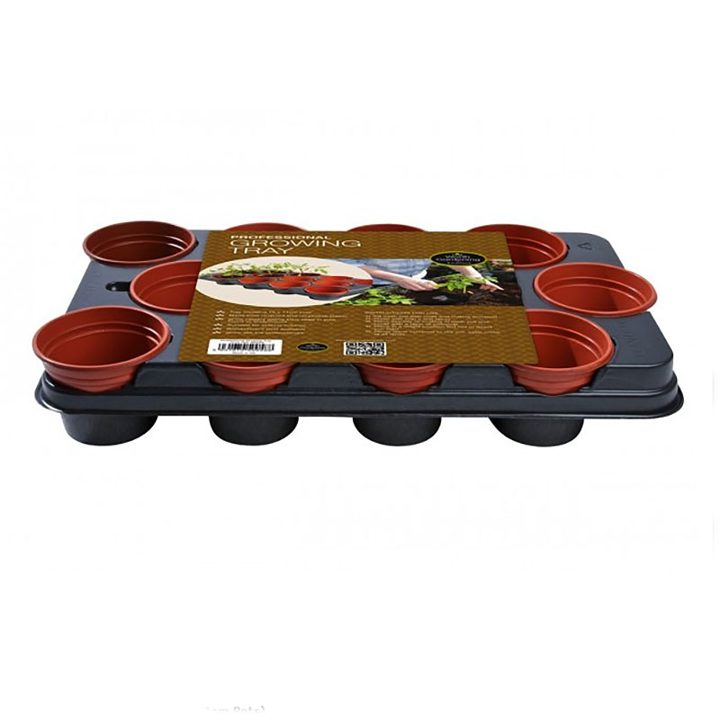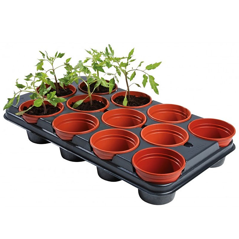 Odlingsbricka med 12 stycken krukor med måtten 11 cm i diameter.