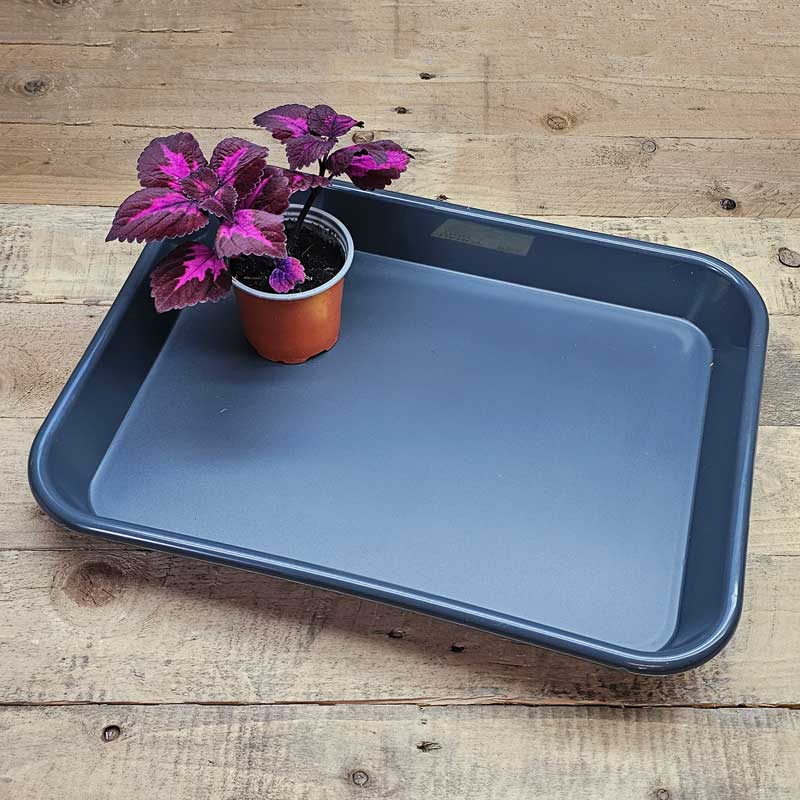 Plantbrickan används till att ställa krukor med frösådder på så att det går lätta att vattna utan att underlaget skadas av jord eller fukt. Med plantbrickan blir det också smidigt att flytta runt frösådderna utan att varje individuell kruka behöver flyttas.