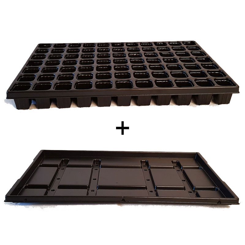 Praktiskt pluggbrätte med underbevattningsbricka tillverkade av 100 återvunnet material. För frösådd av många plantor på liten yta.