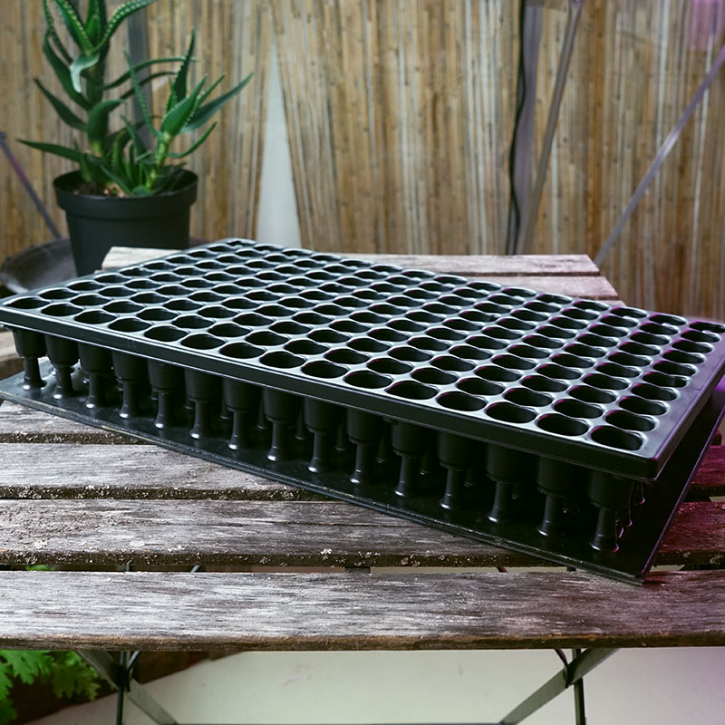 Uttryckningsplatta med 150 piggar för snabb och enkel avlägsning av växter från Pluggbrätte 150 celler rund plugg.