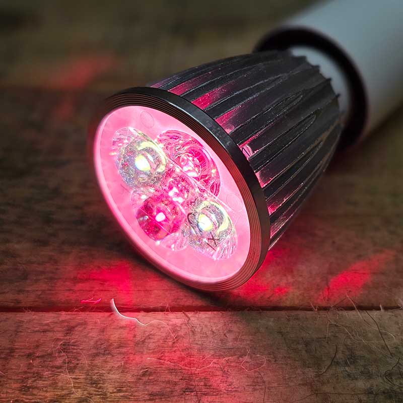 Dioderna är fördelade på 2st 660nm (rött ljus) och 3st 5000K multi (dagsljus).