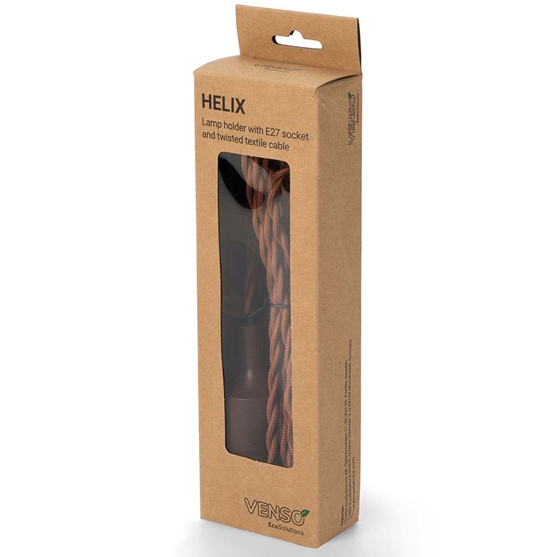 Ge din belysning en unik touch med HELIX E27, en stilfull lamphållare i retroinspirerad design med tvinnad textilkabel. Den integrerade strömbrytaren gör det enkelt att tända och släcka lampan direkt på hållaren.