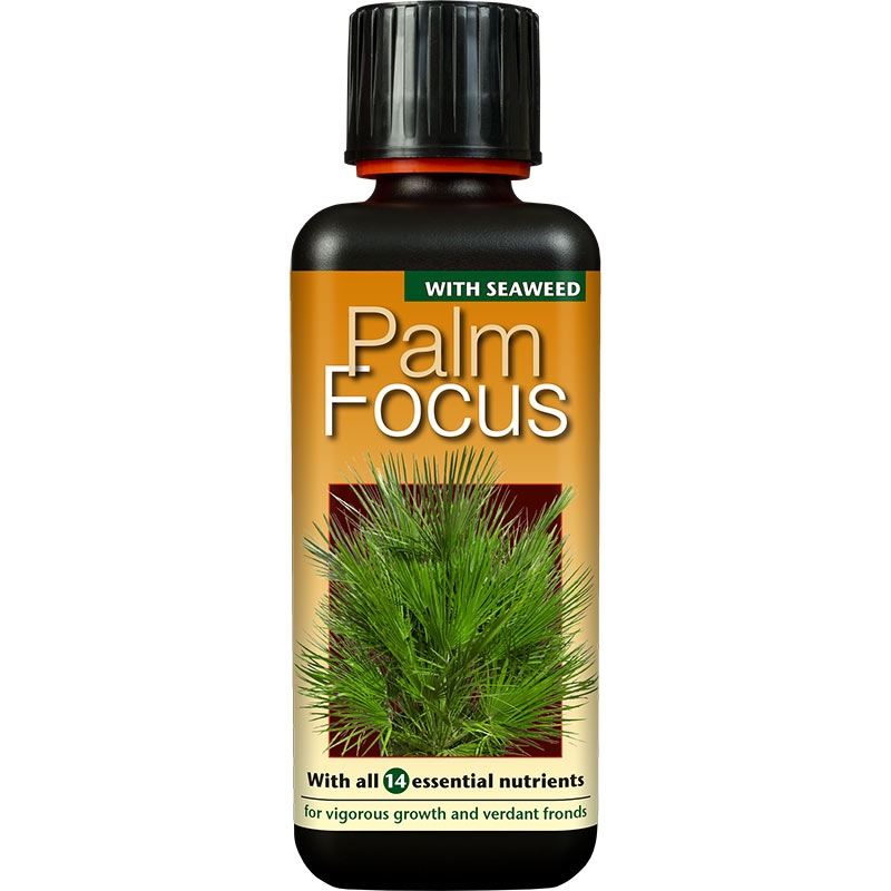 Palm Focus är en precis sammansatt näringslösning för palmväxter som odlas i kruka. Med Palm Focus blir får man sunda palmer med hög vitalitet och livskraft. Nycken är en sund jord som bibehålls med hjälp av Palm Focus rika innehåll av rena organiska plantsyror och en rena koncentrat av havslevande växter (kelp).