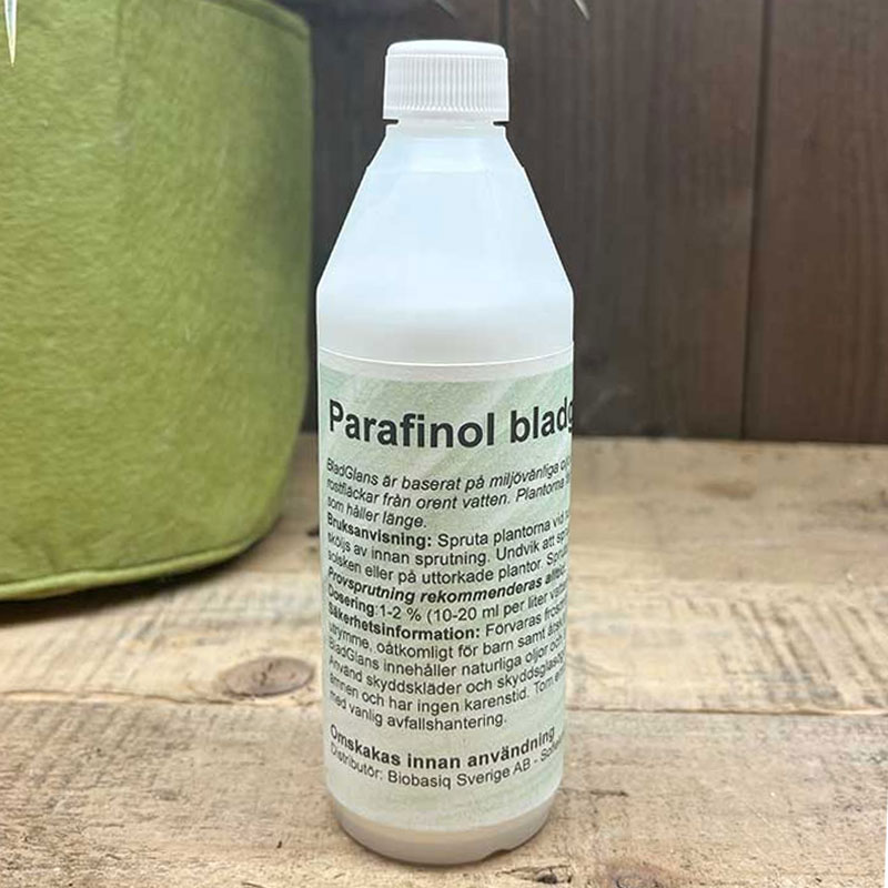 Parafinol är en bladglans baserad på paraffinoljor av hög kvalitet. Den sprayas ut på växtens blad och ger skydd mot exempelvis damm, kalk- och rostfläckar från orent vatten. Bladglansen ger en fin och slät yta på bladen, som hjälper till att hålla plantan frisk och motståndskraftig mot skadegörare. Plantorna får ett sunt utseende med naturlig glans som håller länge.