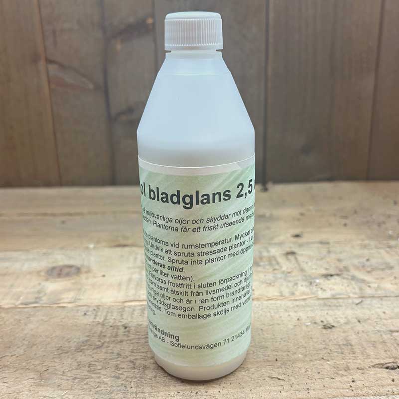 Blanda exempelvis 10-20 ml Parafinol bladglans till 1 liter vatten, eller 1/2-1 dl till 5 liter vatten.