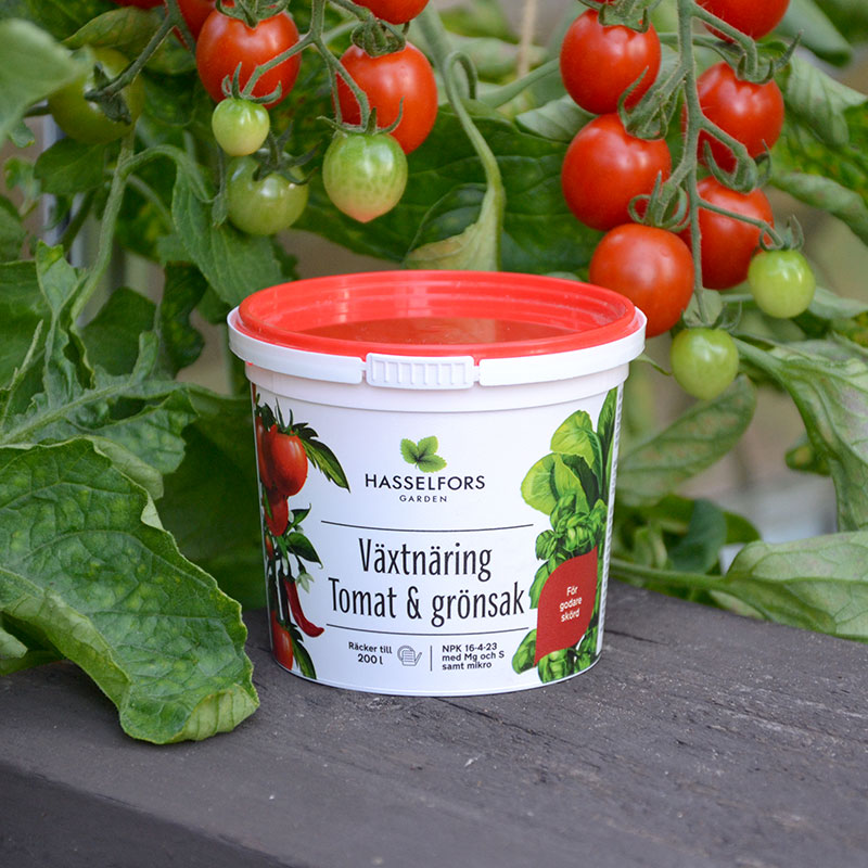Växtnäring Tomat & grönsak används bland annat till tomater, chili, paprika, aubergine, gurka och kapkrusbär.