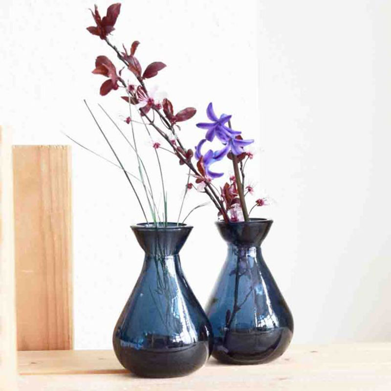 Minivas, mörkblå, 10x7 cm, Handgjord, Färg: Mörkblå, Återvunnet glas. För små buketter