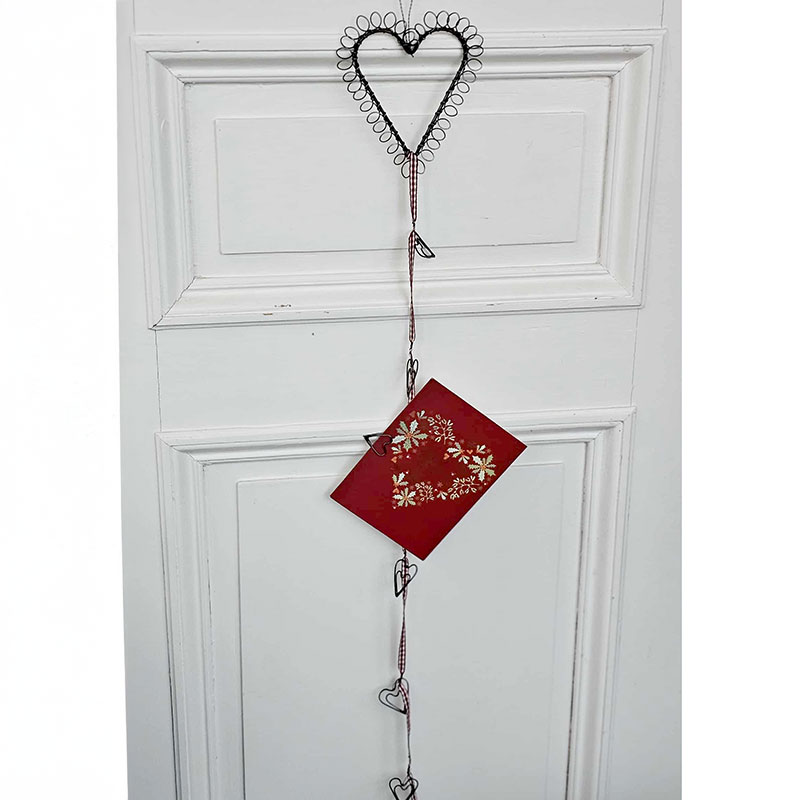 Julkortshängare med sju clips där julkorten fästs. Ögla för upphängning.