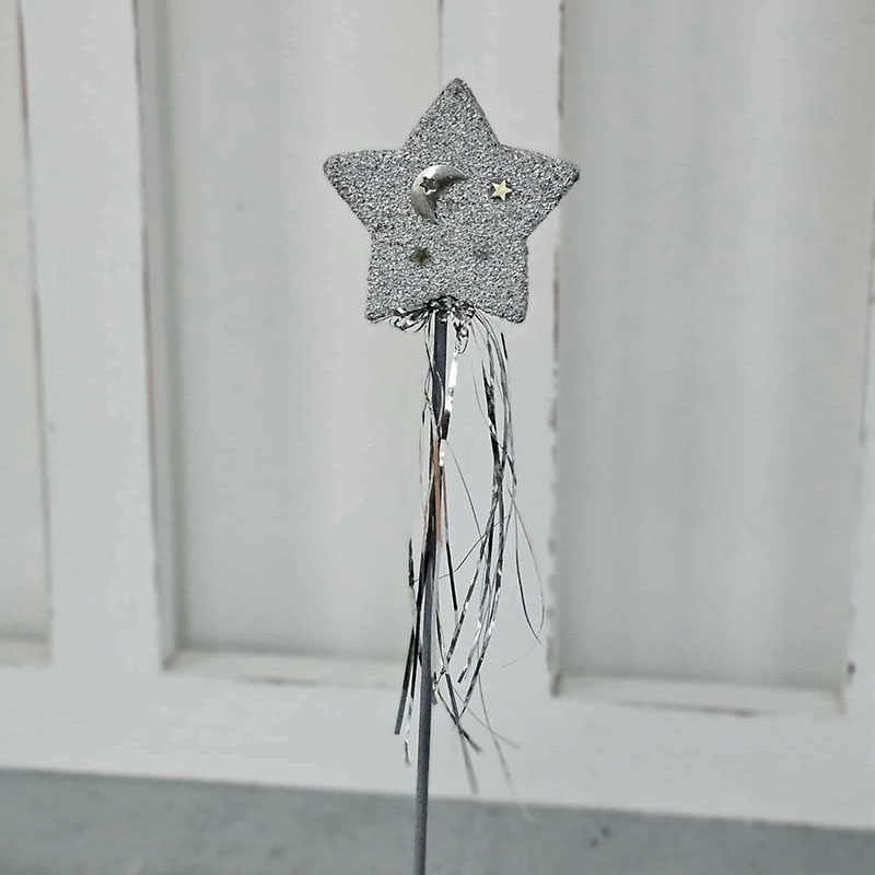 Stjärna på pinne i glittrigt silver.