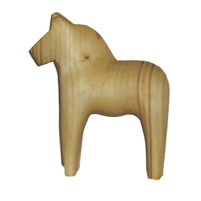 Tillverkad av svensk tall (furu). Inoljad för att bättre framhäva trädets naturliga ådringar. Alla hästar är handgjorda från grunden.