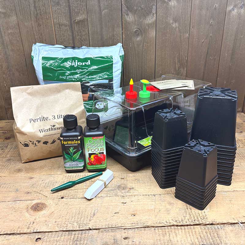 Med Stora chiliodlingspaketet får du en komplett start för att odla egen chili hemma. Paketet innehåller allt du behöver från frö till färdig planta med noggrant utvalda produkter som ger dina chiliplantor bästa möjliga förutsättningar.