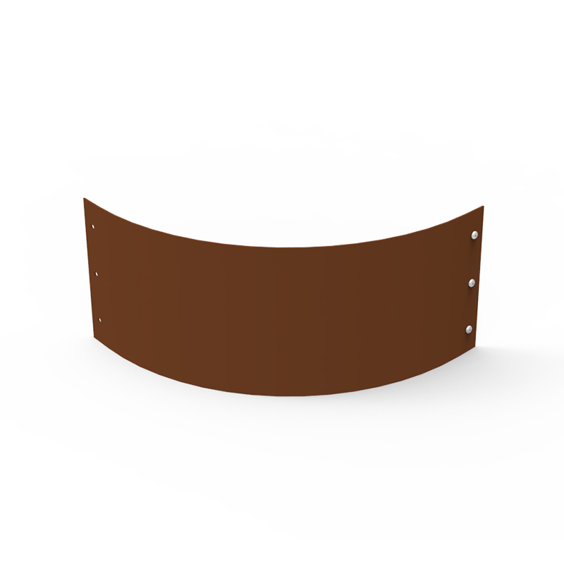 Bågformad planteringskant i corten som skapar en tydlig avskiljning i trädgården. Perfekt för att stoppa ogräs och gräs från att sprida sig in i plantering, rabatter och grusgångar.