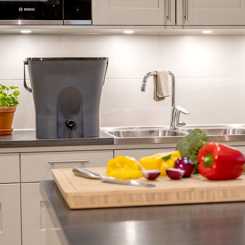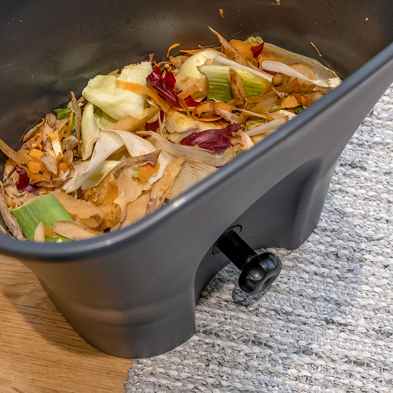 Urban Garden Kompostströ eller Urban Garden Kompostspray (ingår ej) hjälper till att aktivera komposteringen av det organiska avfallet. Komposten kan med fördel placeras under diskhon, balkongen eller på annat lämpligt ställe i hemmet.