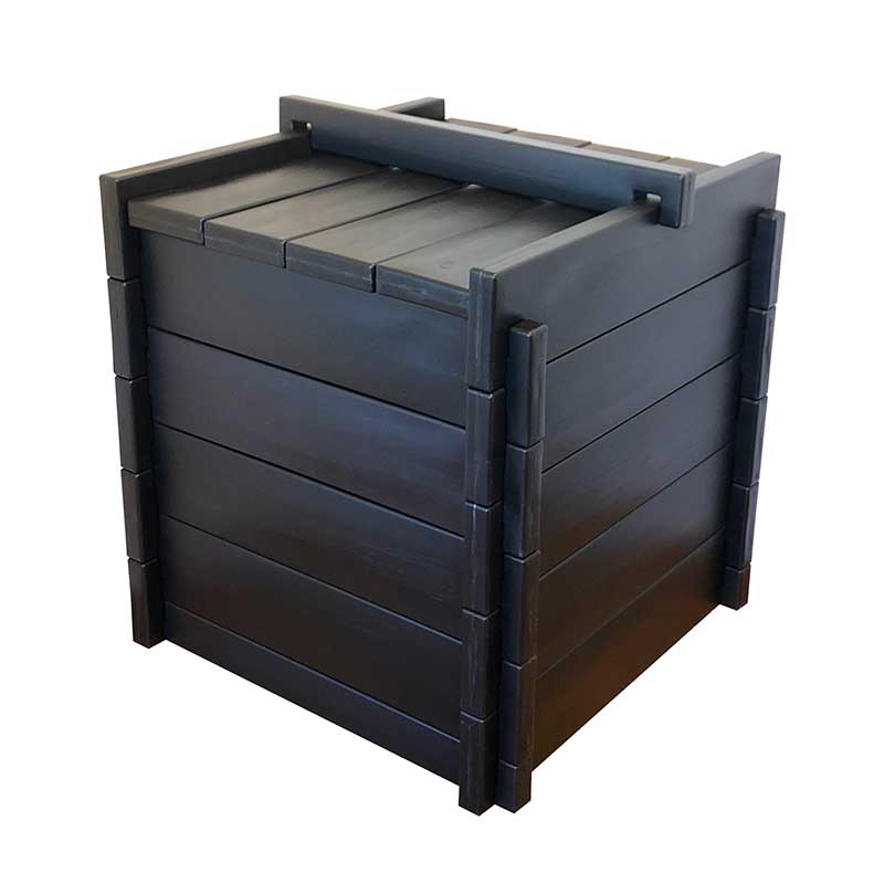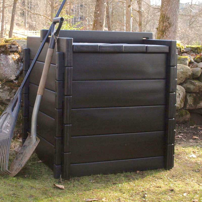 Biokub kompostbehållare består av formblåsta byggelement tillverkade av 100% återvunnen UV-stabiliserad polyetenplast, plast som kan återvinnas på nytt. En hållbar kompost i dubbel bemärkelse som helt är producerad med återvunnen plast.