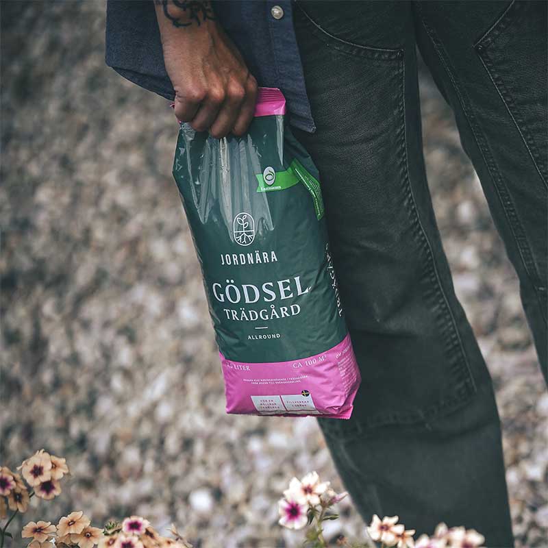Jordnära Trädgård är ett gödsel för allt näringskrävande i trädgården, från rosor, klematis och andra perenner och prydnadsväxter till grönsaksodling. Gödseln gör att allt som växer blir kraftigare, friskare och tåligare, och gör att ätliga växter producerar en större och mer välsmakande skörd.