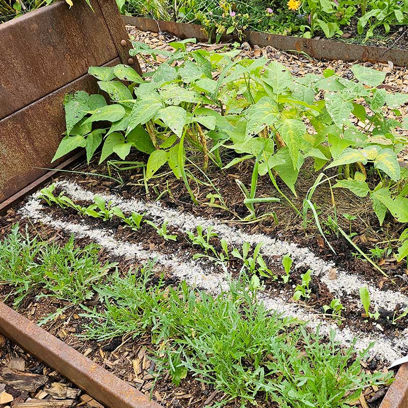 Krossade snäckskal kan hällas ut runt växterna för att skapa en barriär mot sniglar.