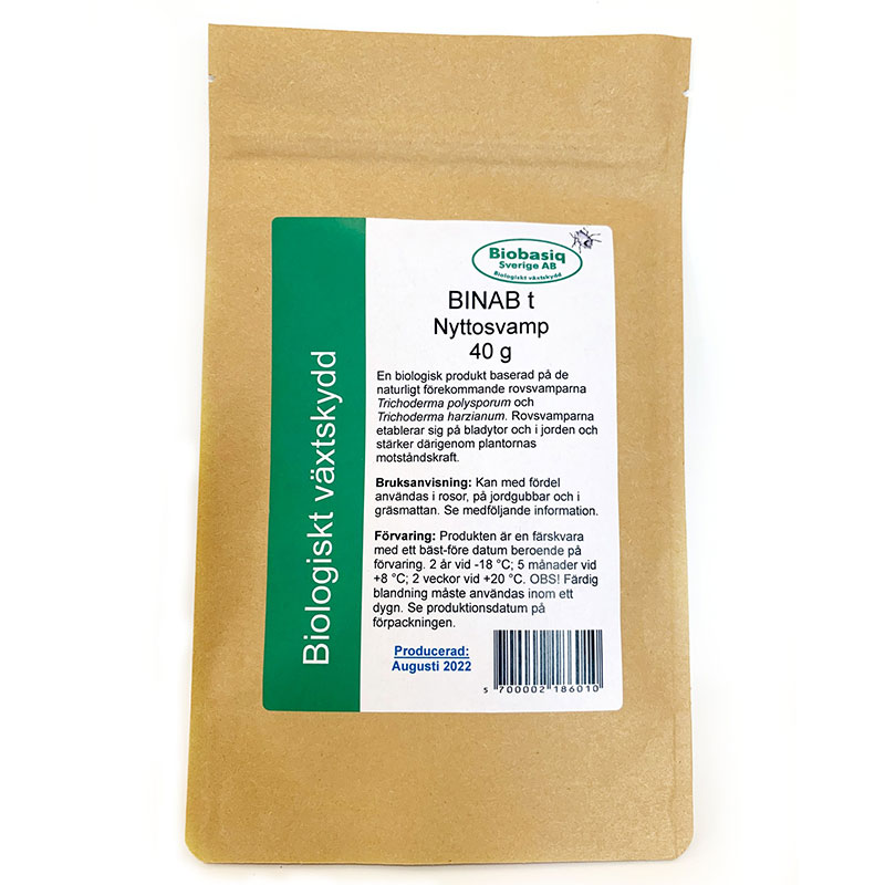 Binab t Nyttosvamp är en biologisk produkt baserad på de naturligt förekommande rovsvamparna Trichoderma polysporum och Trichoderma harzianum. Dessa nyttosvampar återfinns i nästan alla typer av jord där de i mindre grad hämmar andra svampar. Genom att tillföra sådden, sticklingarna eller plantan ett överskott av dessa stammar av Trichoderma spp. kan de stärka växternas motståndskraft.