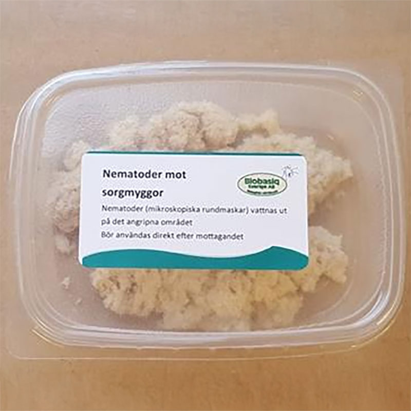 Nematoderna angriper enbart larverna och är helt ofarliga för växter, människor och husdjur. De levereras i en blandning av fin lera och finns i förpackningar om 10 miljoner eller 50 miljoner nematoder, anpassade för olika odlingsytor.