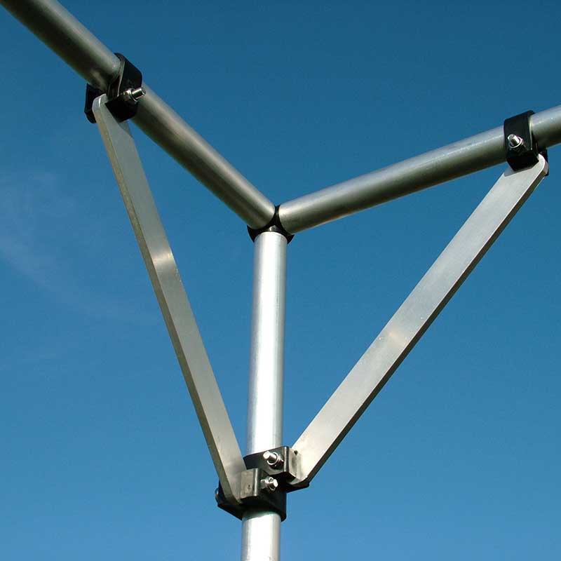 Stommen består av stabila aluminiumrör och sidor av nät med 16 mm maskor och tak med 20 mm maskor.