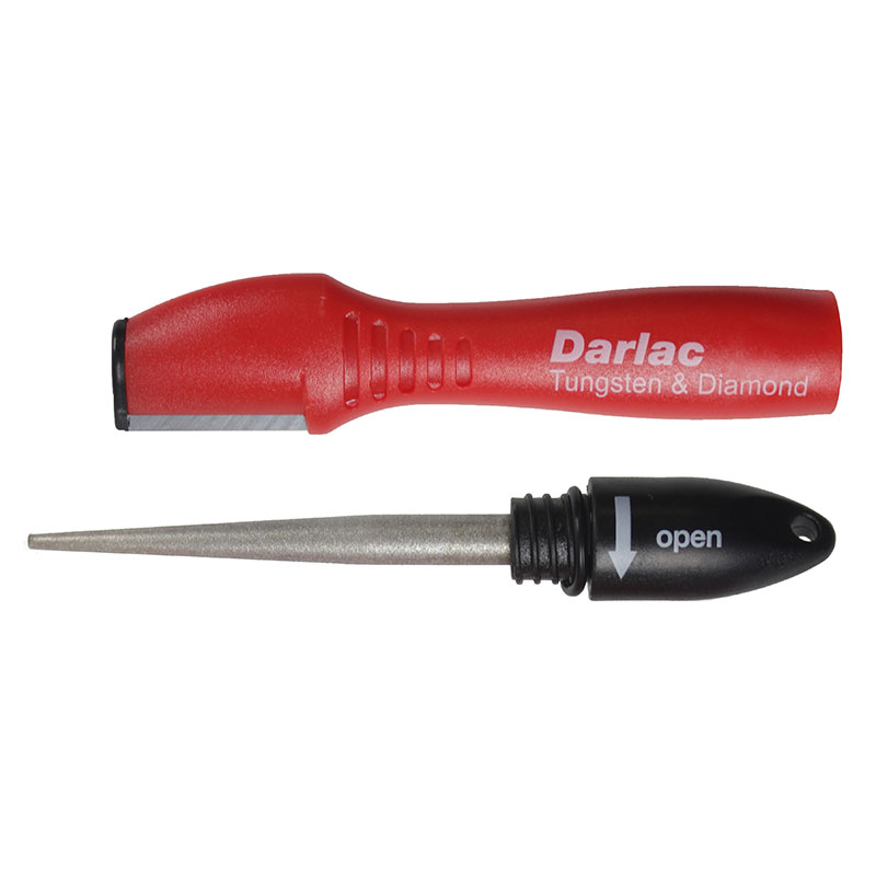 Dalac Tungsten/Diamant-slipjärn är ett mycket användbart två-i-ett-redskap för att hålla skärpan hos alla dina beskärningsredskap.