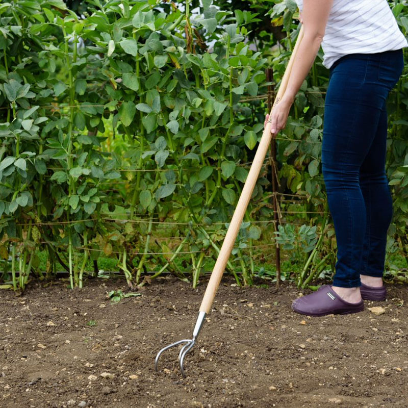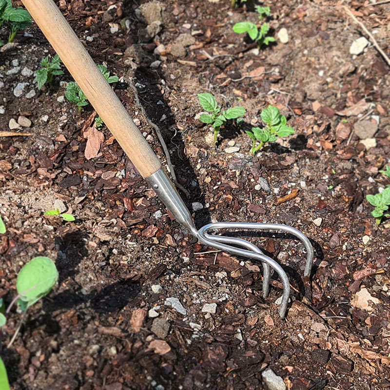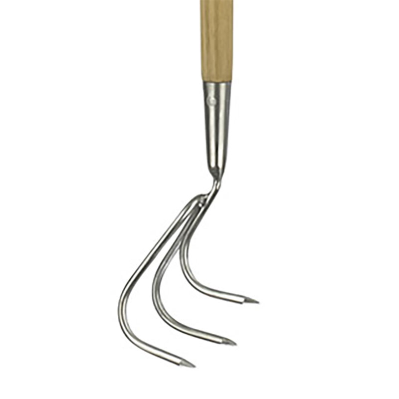 Kultivator med tre klor i traditionell design tillverkad av rostfritt stål i hög kvalitet. Långt skaft tillverkad i vackert askträ bidrar till god komfort och gör den enkel att manövrera och komma åt utan att behöva kröka ryggen.