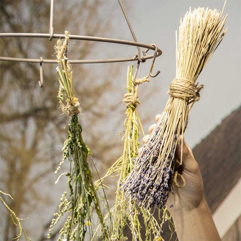 Med den här platssparande ört- och blomtorken kan du enkelt torka både örter och favoritblommor samtidigt som det blir en vacker inredningsdetalj. Ställningen kan också användas till blomsterarrangemang. Ställningen inkluderar fem krokar för upphängning av buketter.