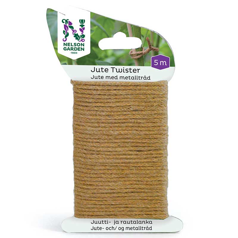 Juteöverdragen metalltråd för mjuk uppbindning och dekoration.