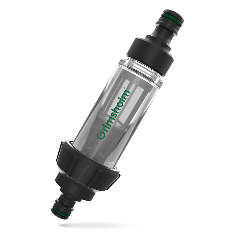 Håll ditt bevattningssystem rent och effektivt med Grimsholms mikrobevattningsfilter. Filtret är utvecklat för att avlägsna partiklar, sediment och orenheter från vattnet innan det når dina slangar och munstycken – vilket minskar risken för igensättning och driftstörningar.