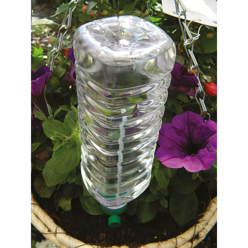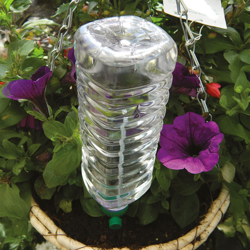 Ett fiffigt bevattningssystem som med vattnets gravitation tillför droppbevattning. Ett smart val ut miljösynpunkt.
