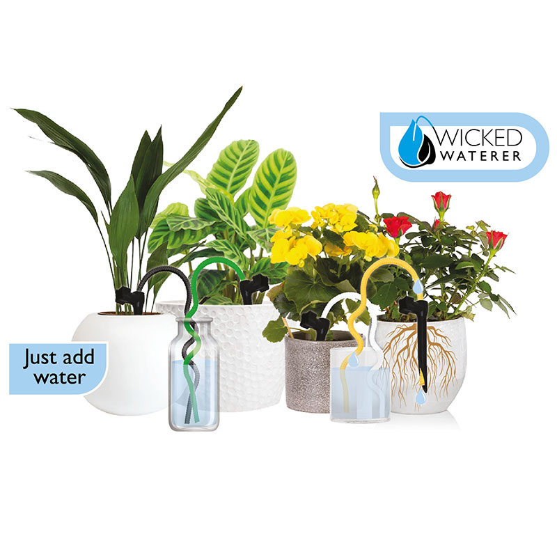 Förpackningen innehåller 4 justerbara flödeskranar med 4 x 50 cm flerfärgade vekar. Plus 2 extra längre 70 cm för de växter på längre avstånd.