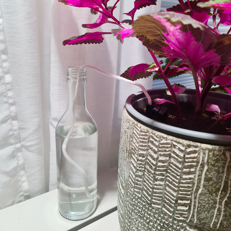 Lägg bara till en flaska eller vilken vattenbehållare som helst för att skapa ett bevattningssystem för inomhusväxter