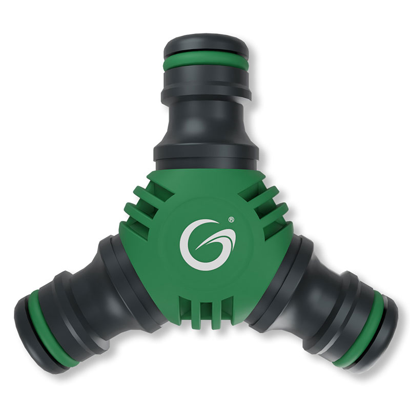 Vill du vattna rabatterna utan att behöva stänga av vattenspridaren på gräsmattan? Med denna splitter / Y-koppling kan två slangar enkelt kopplas till en källa.