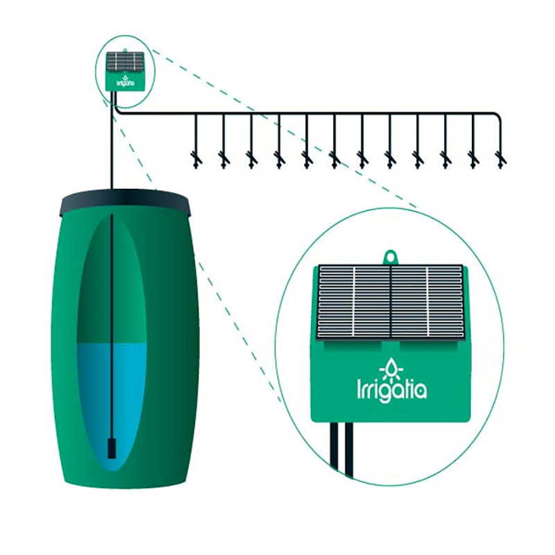 Irrigatia är marknadens mest miljövänliga, automatiska system för solcellsdriven bevattning. Ju mer solen skiner desto mer vatten skickar pumpen ut. Tack vare effektiva droppmunstycken sparas 90% vatten jämfört med vanlig slangvattning.