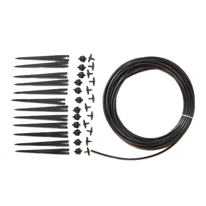 Utbyggnadsset med 15 meter slang och 12 munstycken, 12 T-hållare, 12 hållare att användas till Irrigatia solcellsdrivet bevattningssystem.