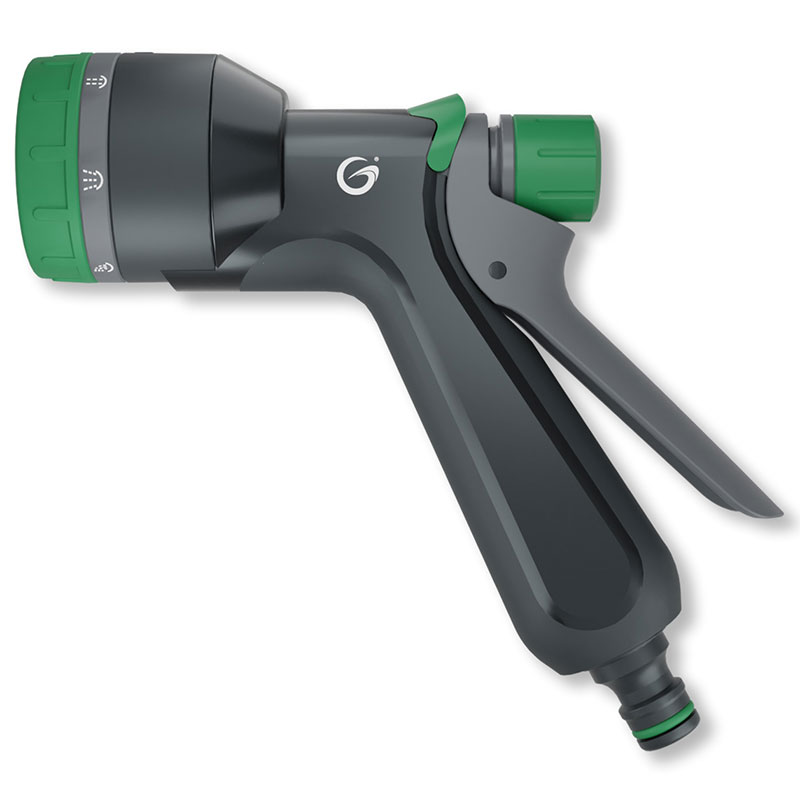 En mångsidig spraypistol som ger dig full kontroll över bevattningen i trädgården. Med flera justerbara strålbilder kan du enkelt anpassa vattenflödet efter olika behov – från skonsam bevattning av känsliga plantor till kraftigare stråle för rengöring.