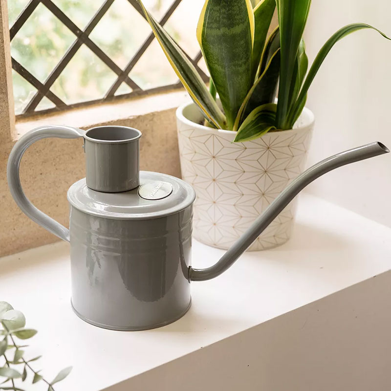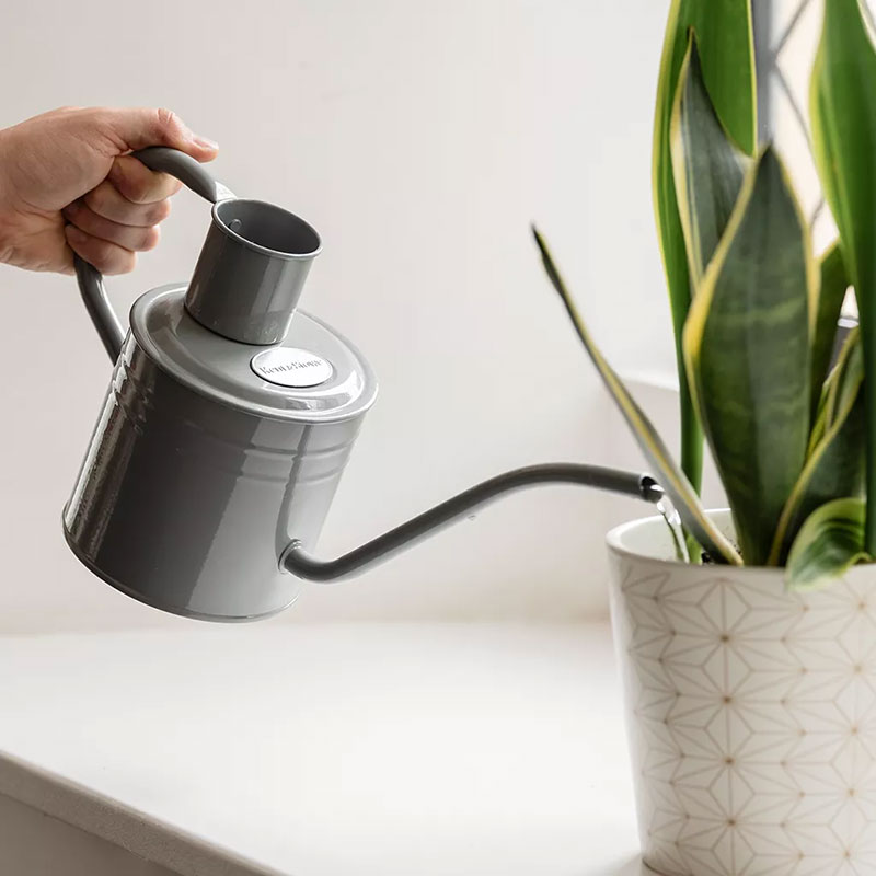 Pulverlackerad vattenkanna i metall, lika dekorativ som funktionell. Den långa smala pipen gör det lätt att vattna utan spill.