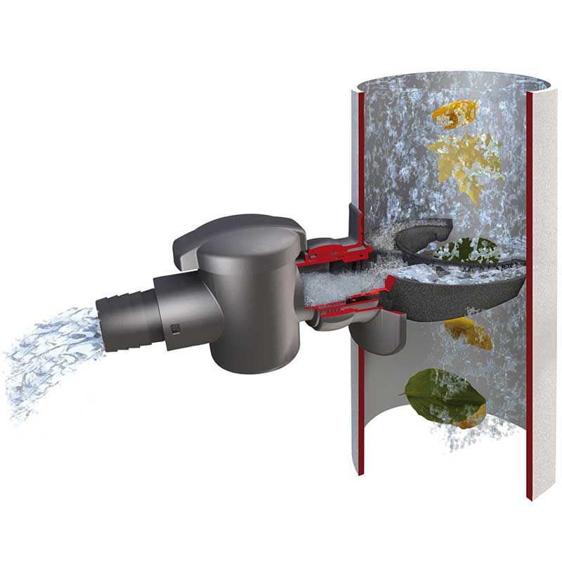 - När tunnan är full rinner vattnet förbi uppsamlaren automatiskt