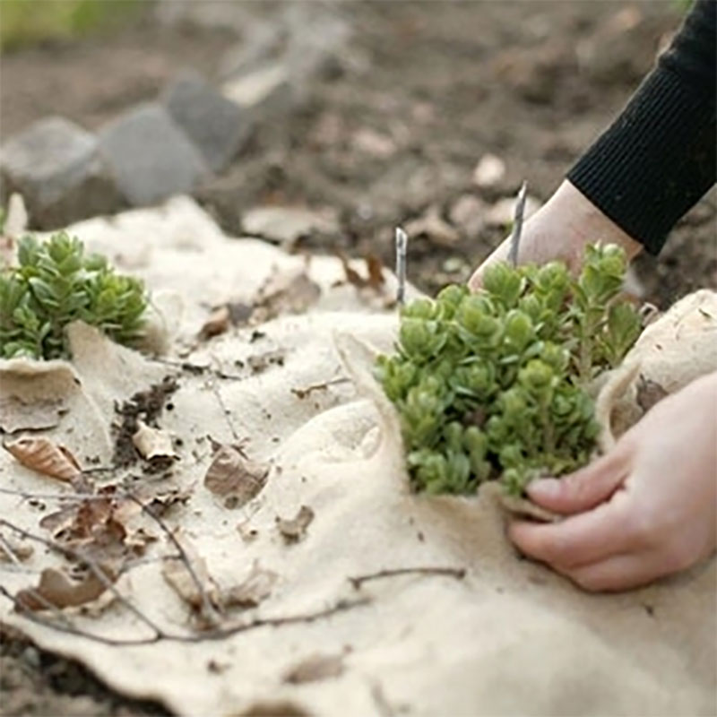 Jutefilt är ett naturligt material som är 100% biologiskt nedbrytbart.